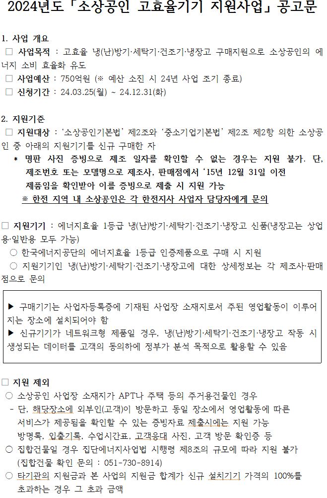 2024년도 소상공인 냉난방기 지원사업 공고문
