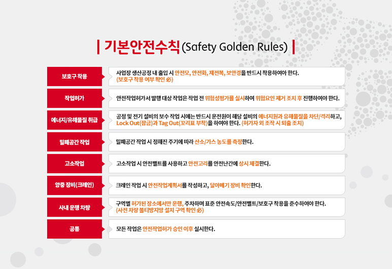 - - 전 구성원과 협력회사는 기본안전수칙을 준수한다.