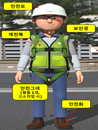 ① 필수 보호구 착용 : 안전화/안전모/보안경/제전복