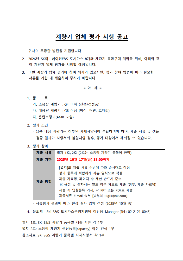 [공지] ‘25년 계량기 업체평가 시행 공고