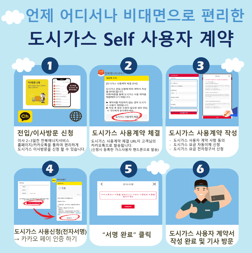 22년부터 이사(전입) 신청 시, 사전 Self-사용계약을 통해 대면 업무를 최소화하고 안전한 도시가스 사용을 위한 서비스를 제공 하고자 합니다.