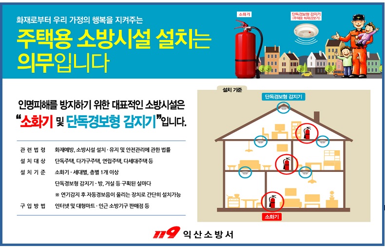 화재로부터 우리 가정의 행복을 지켜주는 주택용 소방시설 설치는 의무입니다.