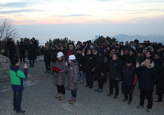 ㈜부산도시가스(대표이사 김영광)는 지난 8일, 황령산 봉수대에서 ‘새해맞이 안전기원 결의대회’를 가졌다.