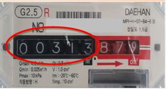 2. 도시가스 계량기 숫자판에서 검정색 바탕의 흰색 숫자를 확인합니다.