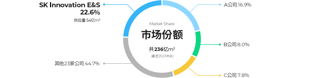 Market Share 市场份额 共236亿m³ (截至2020年末)