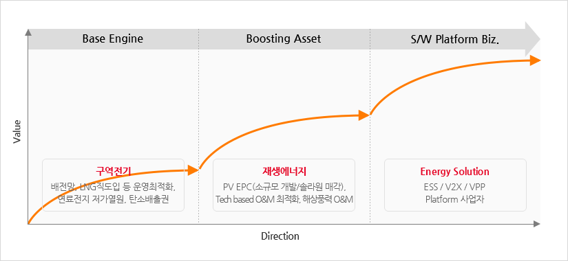 구역전기사업을 기반으로 PV EPC 및 O&M, ESS, 해상풍력 O&M 사업을 통해 안정적인 Cash 확보하고, 그리드-재생에너지-ESS 분산전원 통합 Platform을 구착해 All-in-One Energy Solution Provider로 성장하고자 합니다.