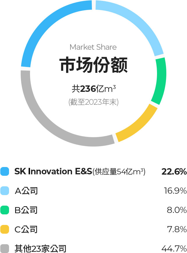 SK Innovation E&S以全韩国8个地区为对象,向约510万户家庭供应城市燃气,是韩国规模最大的城市燃气服务企业。