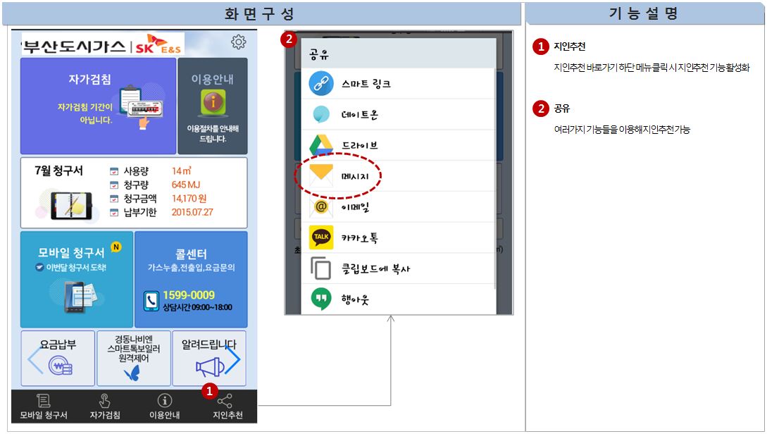 고객님의 편의를 위하여 스마트폰으로 『청구 고지서 확인/관리』,『자가검침입력』,『지인추천』등을 할 수 있는