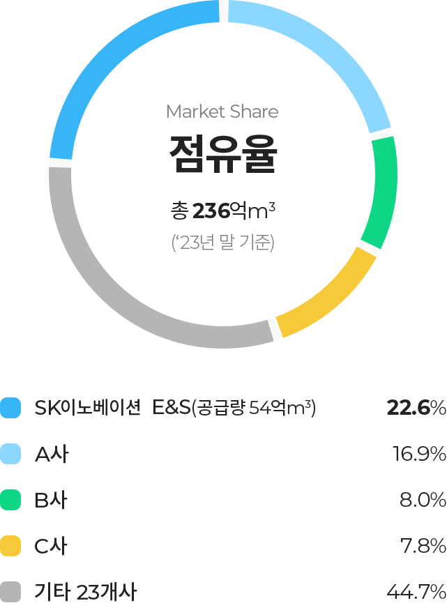 대상으로 약 510만 세대에 도시가스를 제공하는 국내 최대 규모의 도시가스 서비스 기업입니다.