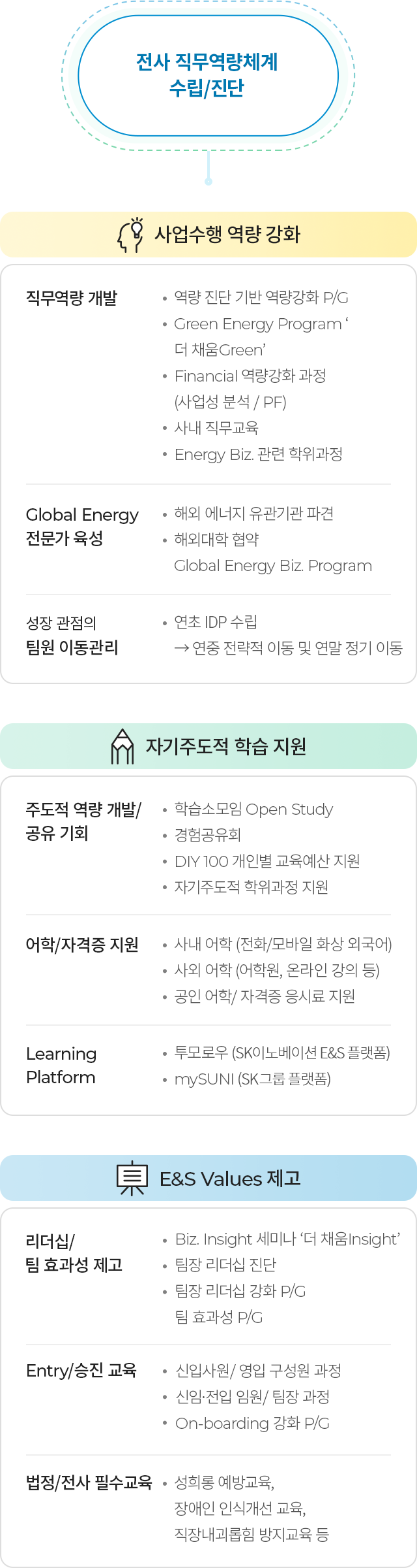 SK이노베이션 E&S는 전사 역량진단을 통해 조직과 구성원의 필요역량을 명확히 하고,