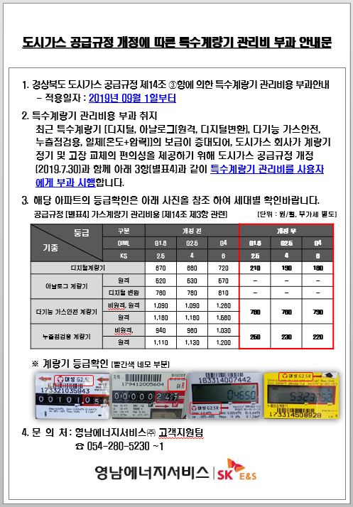 공급규정 개정에 따른 계량기 관리 단가 변경 안내(2019년 9월 1일부터)